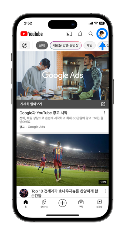 시크릿 모드를 활성화기 위해서, 우선 오른쪽 상단에 있는 [프로필 사진]을 탭 해주세요.