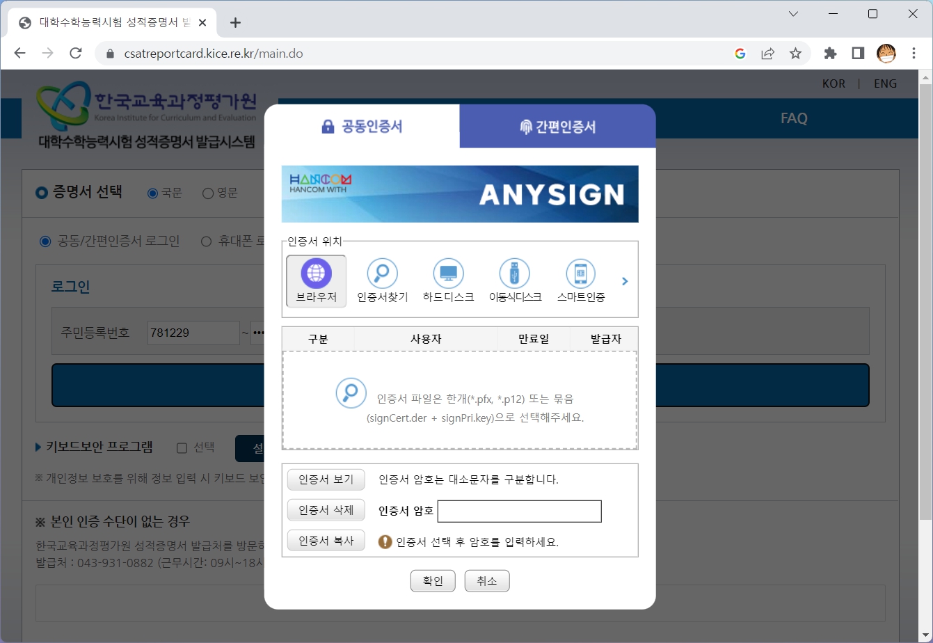 수능성적표 온라인 발급